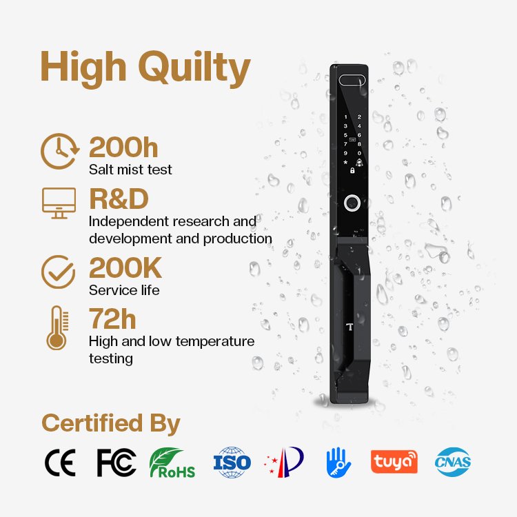 The Tenon K91 smart door lock is a high-end product that combines rugged security with intelligent convenience. Constructed from high-strength aluminum alloy, it’s durable and resistant to external forces. Its built-in anti-theft lock cylinder, compatible with a variety of standard lock bodies, and multiple security mechanisms effectively prevent technical openings, providing solid and reliable physical protection for your home. Multi-level administrator settings offer flexible management capabilities for diverse scenarios, from home to office. Choosing the Tenon K91 means choosing peace of mind and security, ensuring you’re free from potential safety hazards and enjoy a worry-free life.